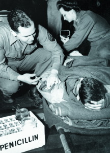 A penicilina era produzida em quantidades suficientes para o tratamento de civis e militares feridos, foi reduzida a taxa de mortalidade do conflito, diferentemente do que ocorrera na Primeira Grande Guerra. Juntamente com as pesquisas da produção da bomba atômica  do urânio 235, a penicilina tornava-se o outro grande segredo da Segunda Gerra Mundial